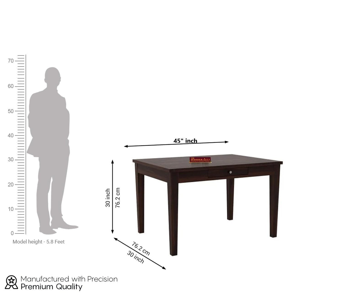 Elevate your dining experience with this expertly crafted 4-seater dining set, constructed entirely from premium solid Sheesham wood. This versatile ensemble features a sturdy dining table with integrated drawer storage, perfect for organizing table linens and dining essentials. Complemented by four cushioned chairs that blend comfort with durability, this set seamlessly suits dining rooms, living spaces, homes, offices, hotels, and restaurants. The rich walnut finish showcases the natural grain and character of Sheesham wood, ensuring timeless appeal and lasting quality. An ideal investment for those seeking functional elegance and robust craftsmanship in their dining furniture.