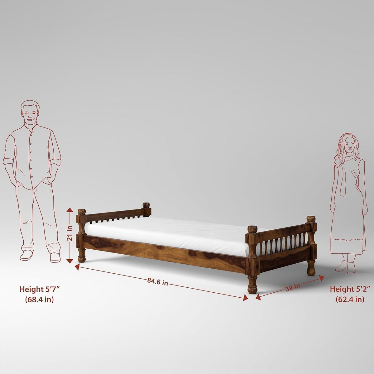 Crafted from premium Sheesham wood, this single bed cot combines durability with timeless elegance. Measuring 216x99x53cm, it offers a sturdy sleeping surface ideal for bedrooms or multipurpose spaces. The solid wood construction ensures longevity and stability, while the honey finish enhances any décor. Its clean, minimalist design maximizes floor space without compromising on comfort. Compatible with 78x36 inch mattresses, this bed delivers reliable support for years to come. A versatile investment in quality furniture that transcends trends.