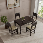 Experience timeless elegance with THE WOODEN CITY Dining Table 4 Seater, crafted from premium rosewood with a rich walnut finish. This four-seater dining set includes four chairs featuring comfortable beige cushions, blending style with comfort. Designed for easy self-assembly, it offers practicality without compromising durability. Ideal for home dining, it enhances your space with a refined yet welcoming atmosphere.